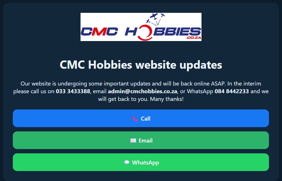 Welcome to CMC Hobbies! Our online shop ensures you can browse, and shop, 24/7 for your convenience.